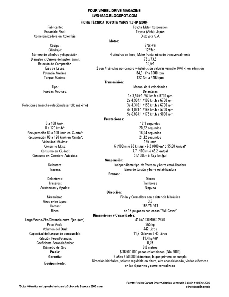 Toyota Yaris 2007 Ficha Tecnica / Ficha Tecnica Toyota Yaris Modificaciones Y Anos / Yaris 1.0 eco año de fabricación:
